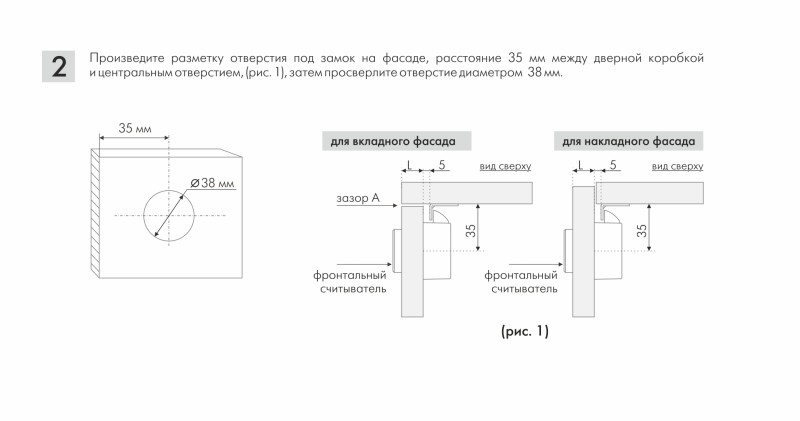 Замок Z604 легок в установке. Фронтальный считыватель врезной, а ответная часть замка монтируется с обратной стороны фасада накладным способом. Подходит для фасадов с ручками и для PUSH, для распашных и для выдвижных фасадов.
