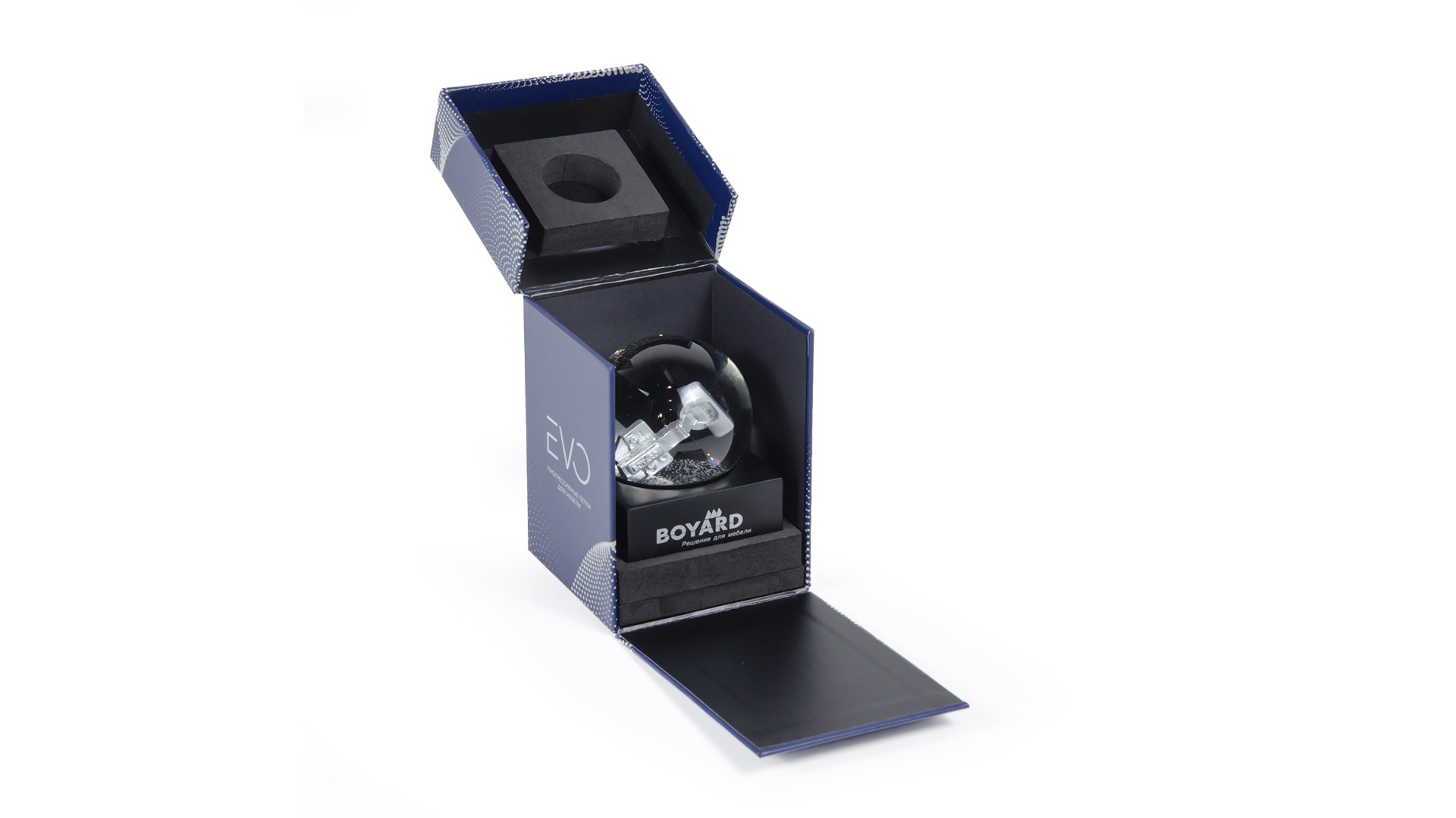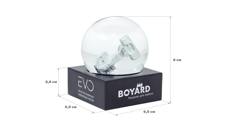 Размеры шара EVO идеально подходят для размещения на полке, в витрине, на рабочем столе, в нише выставочного оборудования. Детальная проработка миниатюры петли и всего оформления шара гарантирует эффектный вид с любого ракурса.