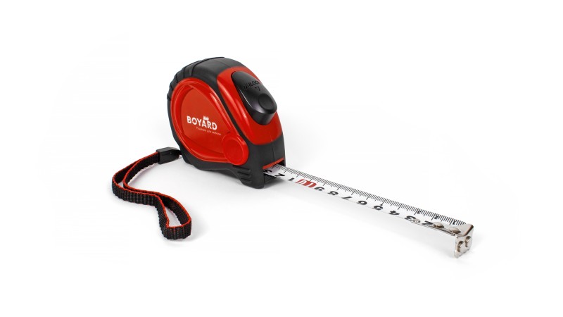 Прочная измерительная лента длиной 5 метров и шириной 19 мм удобно выдвигается без изломов. Зацеп true-ноль со встроенным магнитом надёжно фиксируется на старте полотна, а автостопор фиксирует ленту на необходимой длине. Корпус рулетки выполнен из крепкого ABS пластика. Рулетка в фирменном красном цвете с логотипом BOYARD не затеряется в рабочем пространстве, и с помощью клипсы-зажима может быть размещена на поясе, поясной сумке, в прорези кармана или на сумке с инструментами.