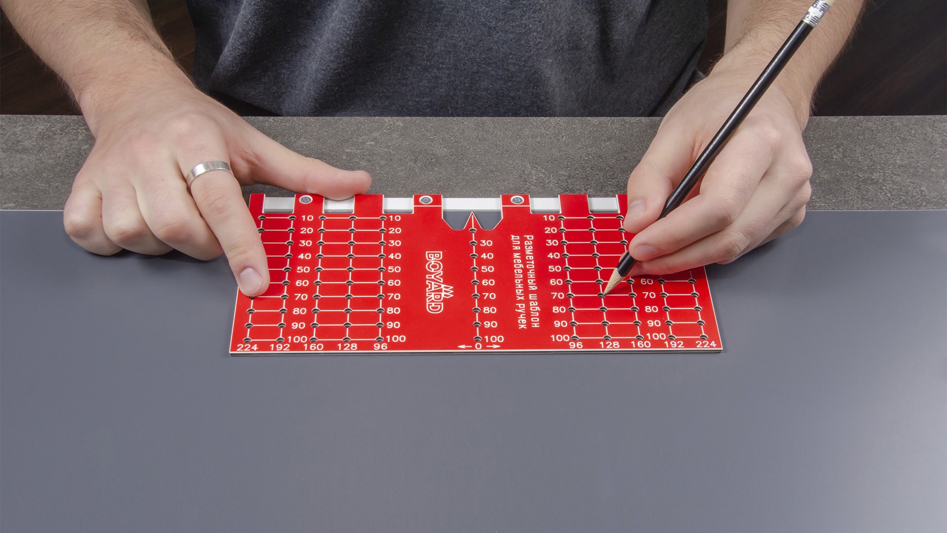 S909 — разметочный шаблон для быстрого и удобного монтажа мебельных ручек. Позволяет выполнять точную разметку отверстий для установки фурнитуры, что значительно упрощает последующий монтаж. Могут использоваться как в индивидуальном, так и в серийном производстве мебели.