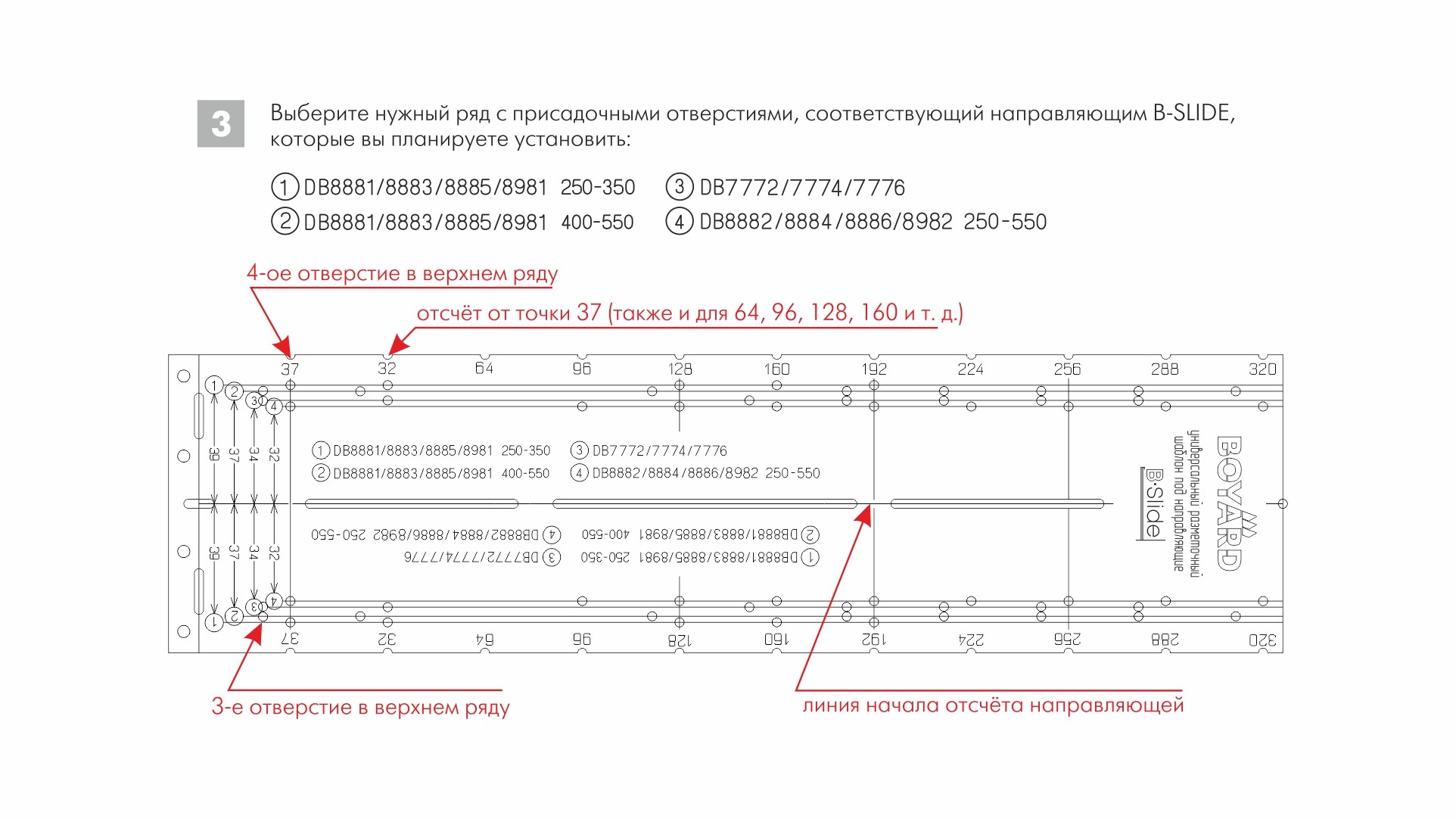 Разметочный шаблон для направляющих B-SLIDE S910R.1/373x100/2023