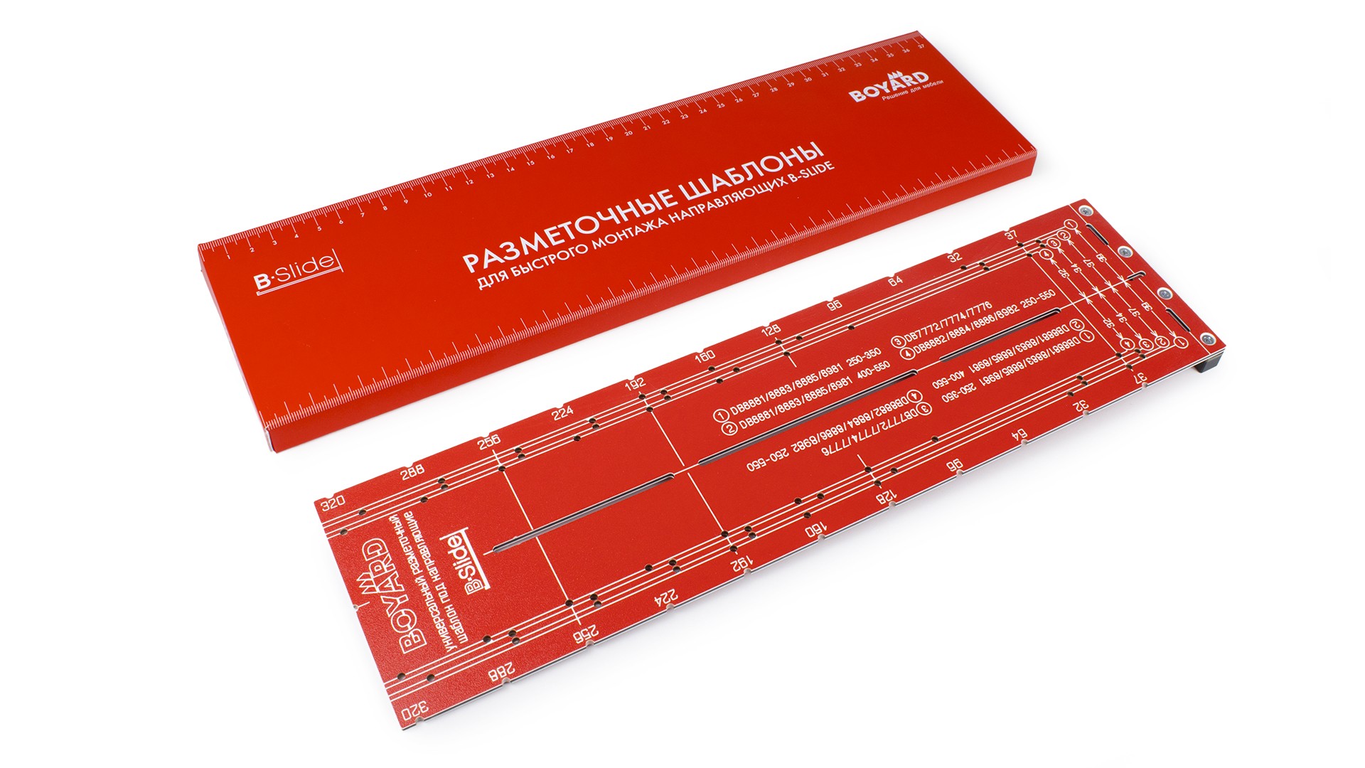 S910 — разметочный шаблон для быстрого и удобного монтажа направляющих B-SLIDE. Позволяет выполнять точную разметку отверстий для установки фурнитуры, что значительно упрощает последующий монтаж. Может использоваться как в индивидуальном, так и в серийном производстве мебели.