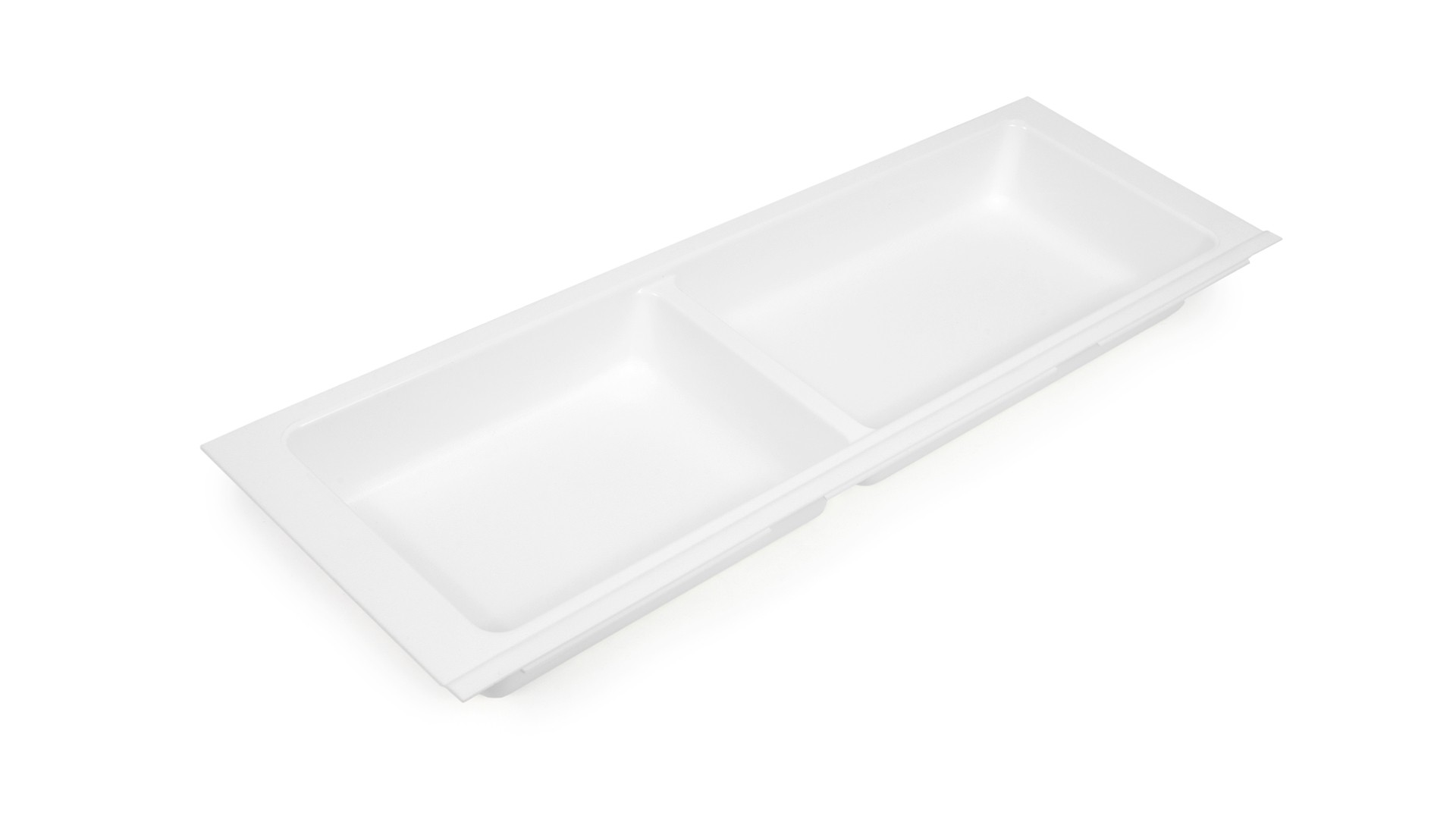 PC13 — широкий поддон из экологичного полипропилена, необходим для хранения столовых приборов. Является составным элементом для формирования индивидуальной комбинации поддонов линейки BLӦKI для выдвижных мебельных ящиков глубиной 500 мм и шириной от 500 мм.