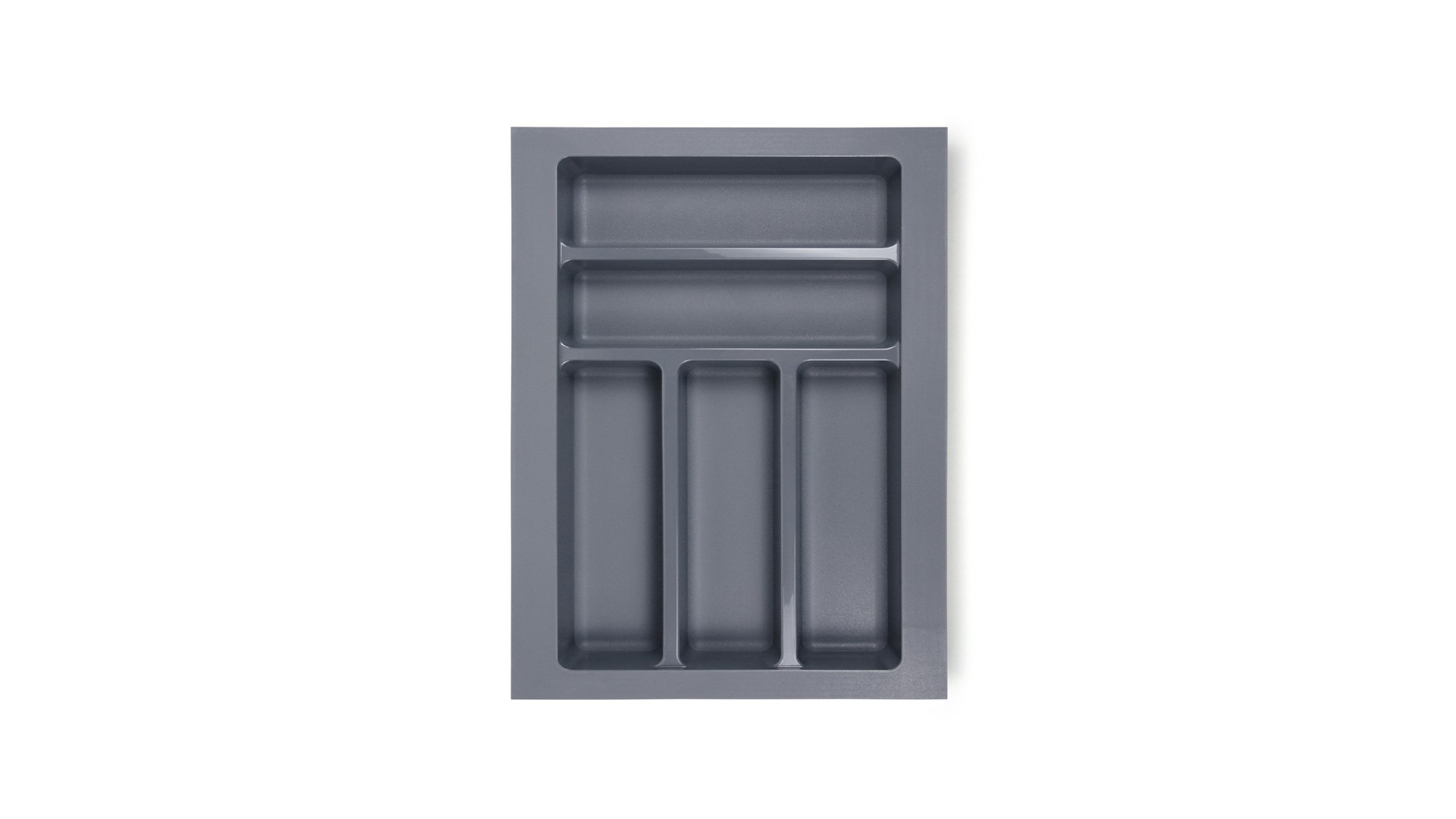 PC14 — многосекционный поддон из экологичного полипропилена, необходим для хранения столовых приборов. Является обязательным образующим элементом для формирования любой комбинации поддонов линейки БЛОКИ для выдвижных мебельных ящиков глубиной 450 мм и шириной от 500 мм.