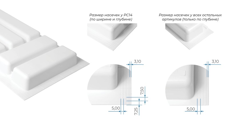 Базовая глубина поддона — 480 мм. При необходимости её можно уменьшить до 444 мм с помощью специальных насечек на обратной стороне поддона. Ширина блока также корректируется в диапазоне 292 – 248 мм.