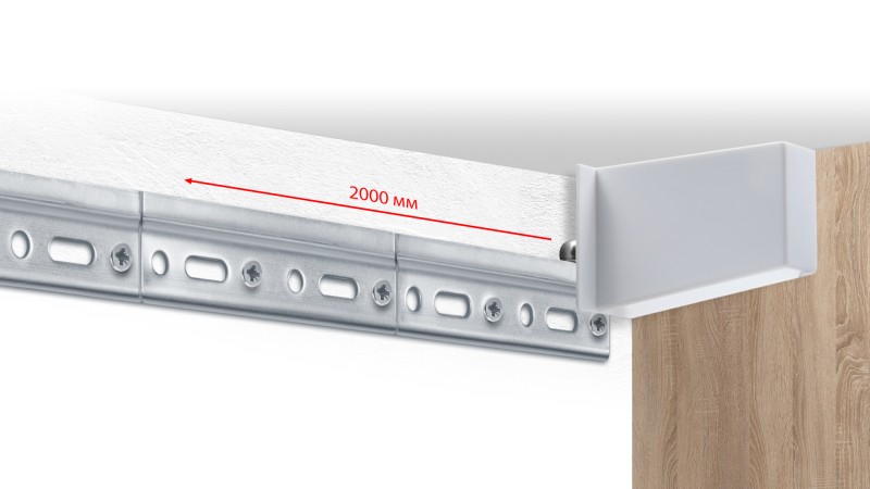 CHH02 — монтажная рейка для навесов. Используется для надежного крепления к стене и навешивания на неё мебельных модулей с нагрузкой до 160 кг на каждый.