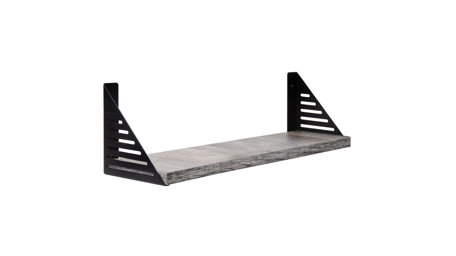 Универсальная конструкция изделия позволит закреплять полки с внутренней стороны полкодержателя, устанавливая полки между ними или под полками. За счёт декоративных горизонтальных отверстий по всей конструкции — модель станет отличным решением для таких стилей, как — модерн, лофт, гранж.