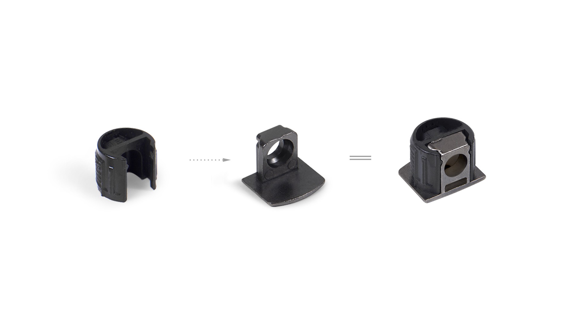 Рёбра по окружности пластикового корпуса служат для плотной фиксации держателя в полке, особая конструкция полкодержателя прочно закрепляет полку на фланце, а разборное соединение удобно для пробной сборки, хранения и перевозки мебели.