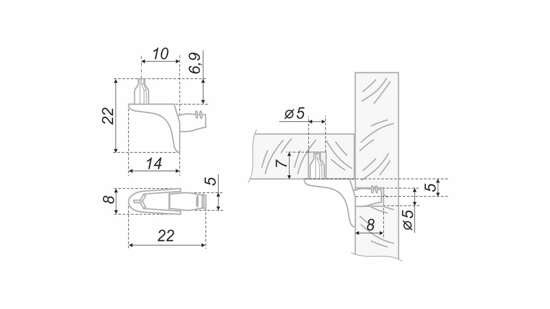 Полкодержатель металлический с фиксирующим трехгранным штифтом.