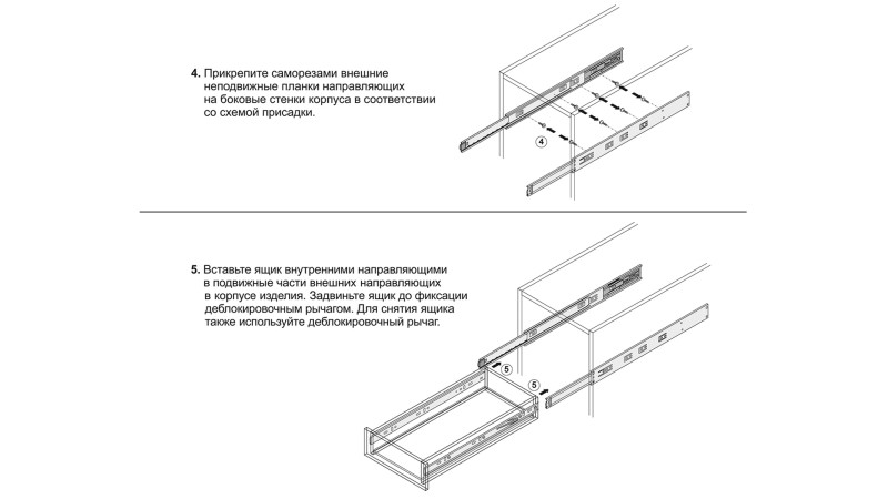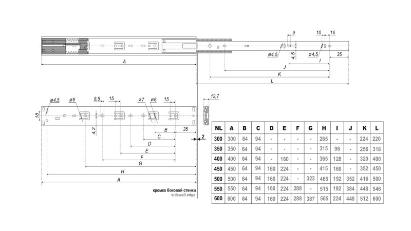 Модель представлена в размерной линейке от 300 до 600 мм. DB4512 обеспечивают полное выдвижение с 400 мм.