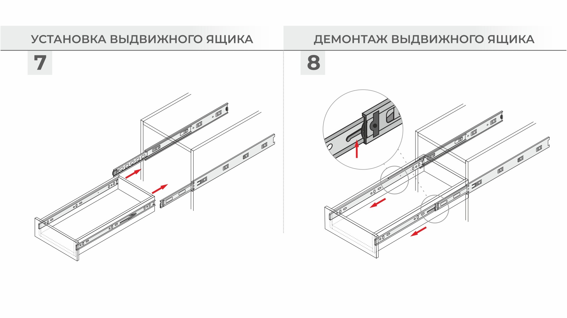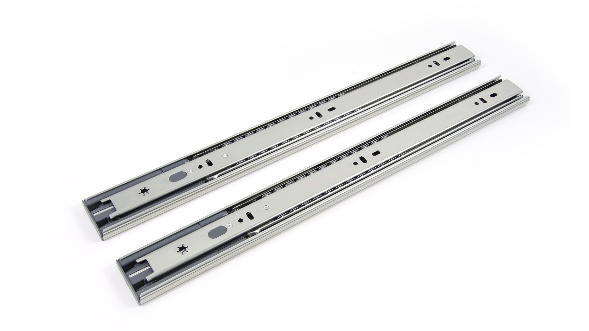 DB4525 выносливы и надежны, выдерживают до 30 кг (в зависимости от монтажной длины и с учетом веса самого мебельного ящика) и рассчитаны на 50 000 циклов открывания/закрывания. Представлены в широком диапазоне длин: от 300 до 550 мм (с шагом 50 мм), с полным выдвижением, начиная с длины 450 мм.