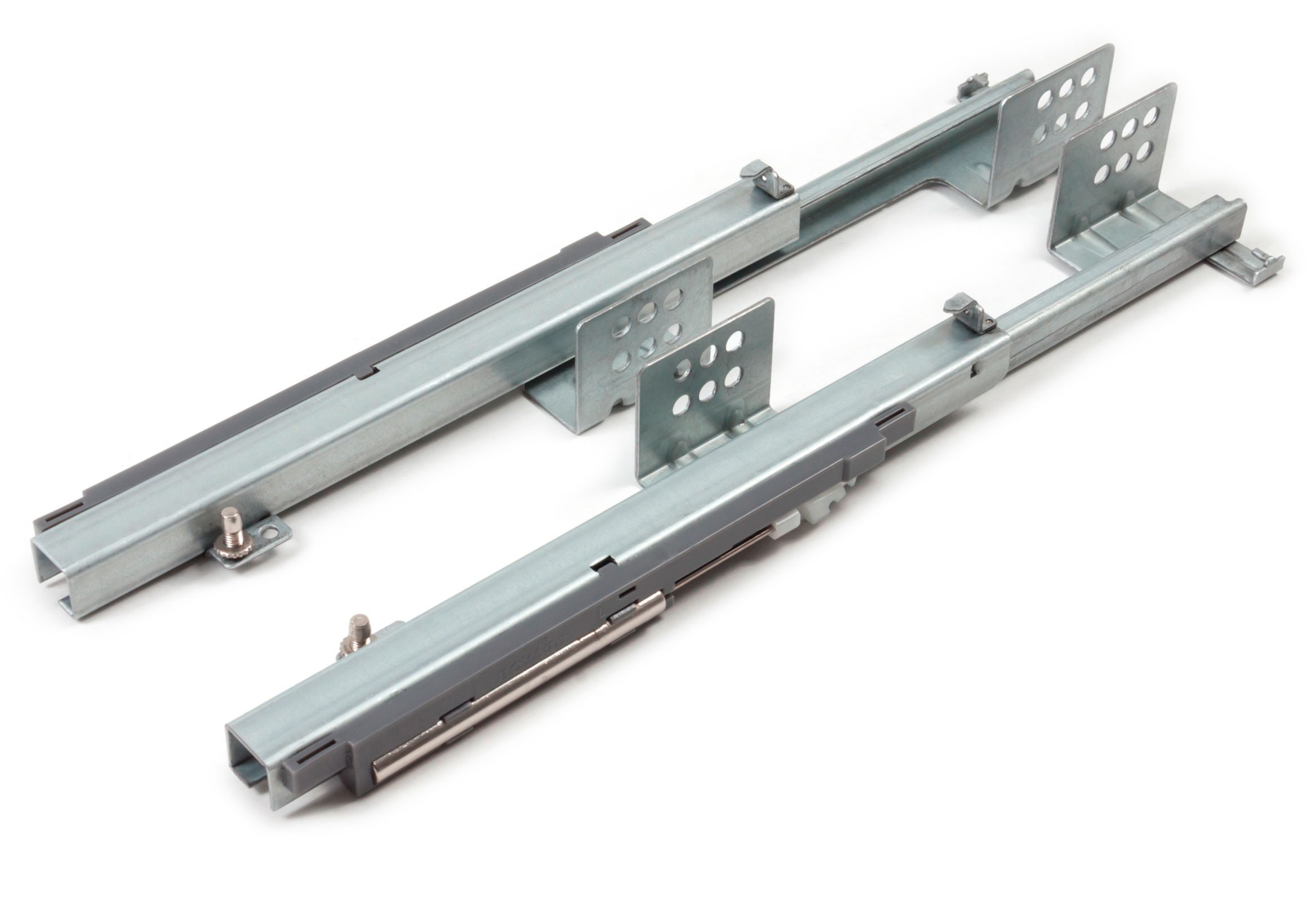 Направляющие Бислайд DB7774 с доводчиком частичного выдвижения насадного монтажа с минимальным усилием на открывание мебельного ящика ≈ 26 N. Облегчённое выдвижение сделано для максимальной интеграции с гарнитурами малых форм. DB7774 идеально подойдут для прихожих, гостиных, спален и другой компактной мебели с небольшой глубиной выдвижных ящиков.