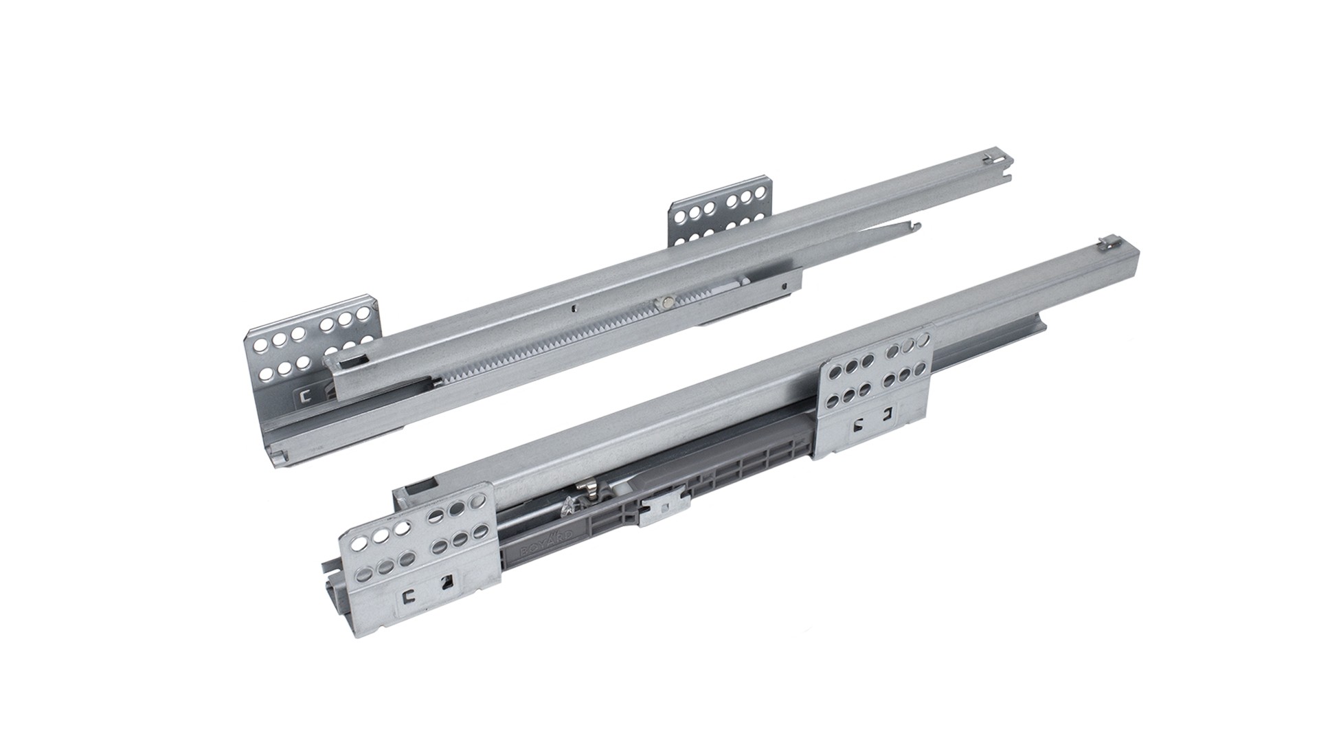 DB8181 – направляющие полного выдвижения с функцией амортизации при закрывании. Выдерживают нагрузку - 40 кг и обеспечивают бесперебойную работу на протяжении 80 000 циклов, подтверждённых сертификатом лаборатории SGS.