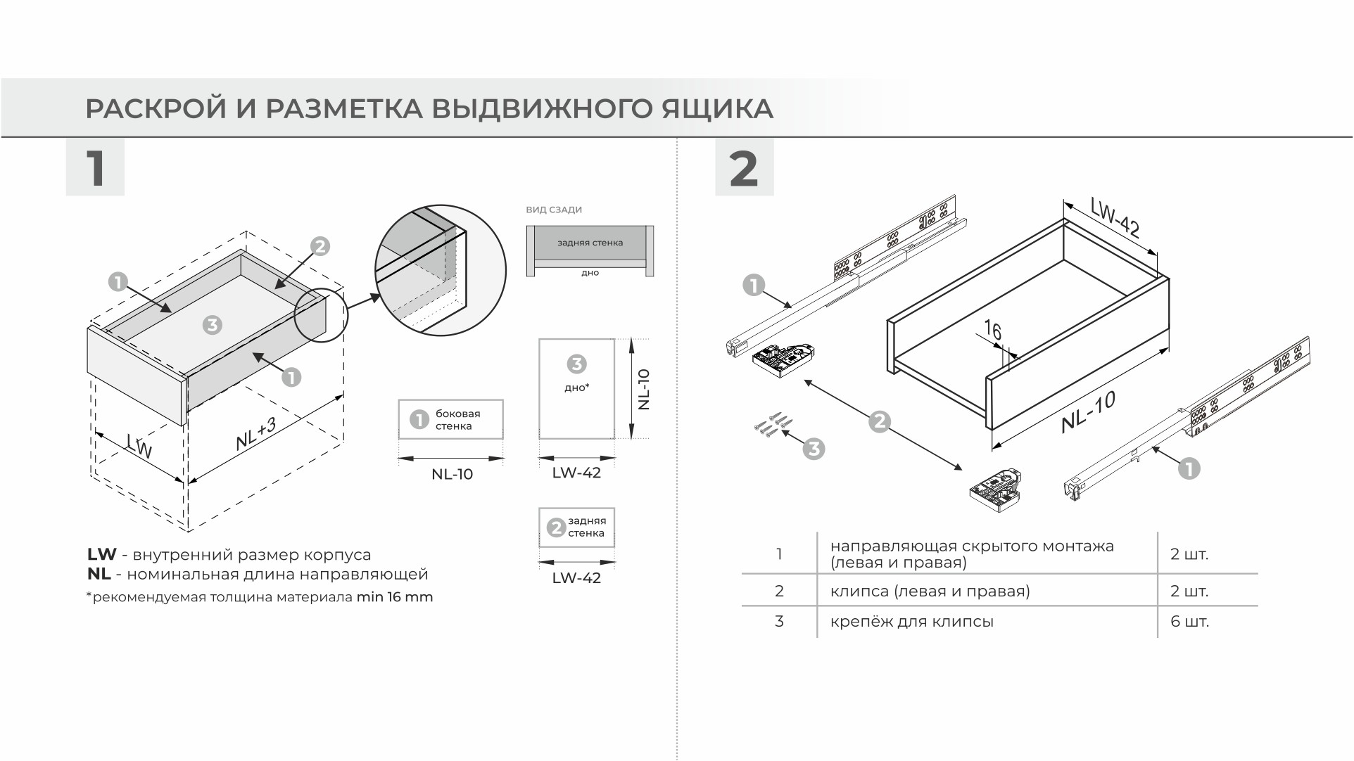 - простой монтаж выдвижного ящика на направляющие и быстрый демонтаж;