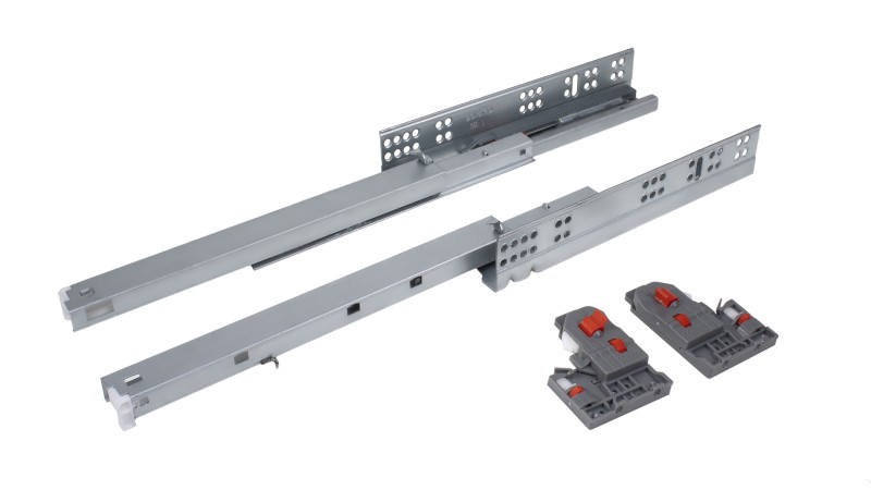 B-Slide DB8781 — базовые направляющие скрытого монтажа полного выдвижения с плавным доведением и выверенным набором опций и возможностей для мебельных производителей.