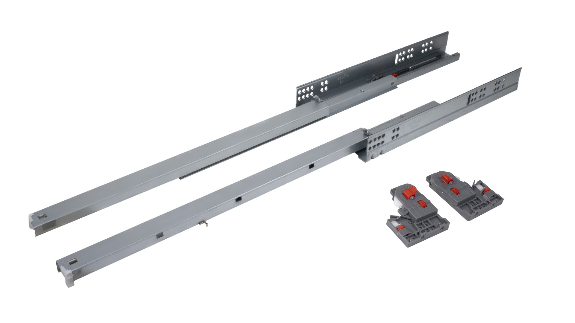 B-Slide DB8781 — базовые направляющие скрытого монтажа полного выдвижения с плавным доведением и выверенным набором опций и возможностей для мебельных производителей.