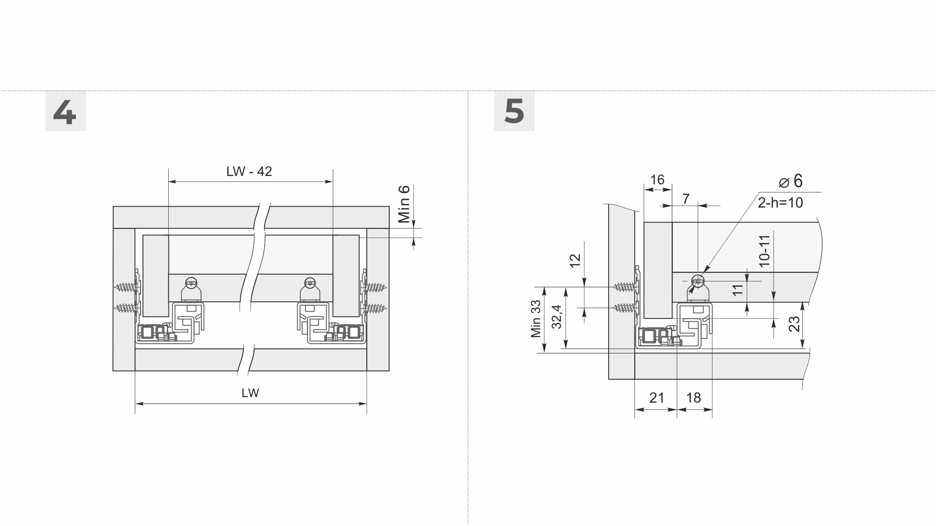 В направляющих предусмотрены дополнительные металлические упоры на подвижной и неподвижной частях направляющих для сдерживания давления в момент установки и в процессе эксплуатации. Это снижает риски излома механизма PUSH, а также избавляет от необходимости создания дополнительных упоров при создании выдвижных ящиков с вкладным типом фасадов.
