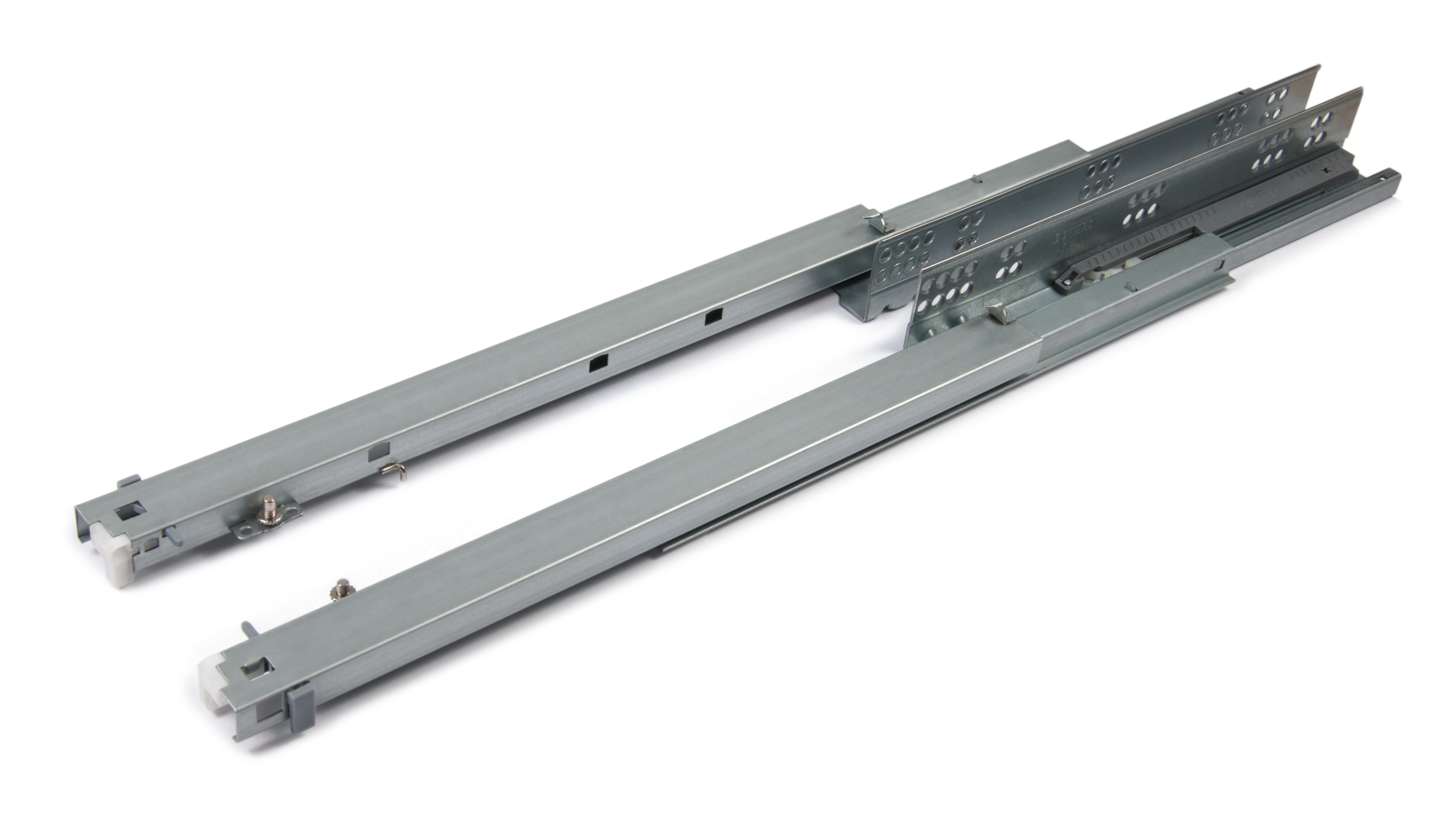 Направляющие скрытого монтажа В-slide предусматривают версию полного и частичного выдвижения. Механизмы с артикулами, заканчивающимися на нечетные цифры DB8881, DB8883 — полного выдвижения. Четные артикулы DB8882, DB8884 говорят о неполном выдвижении.