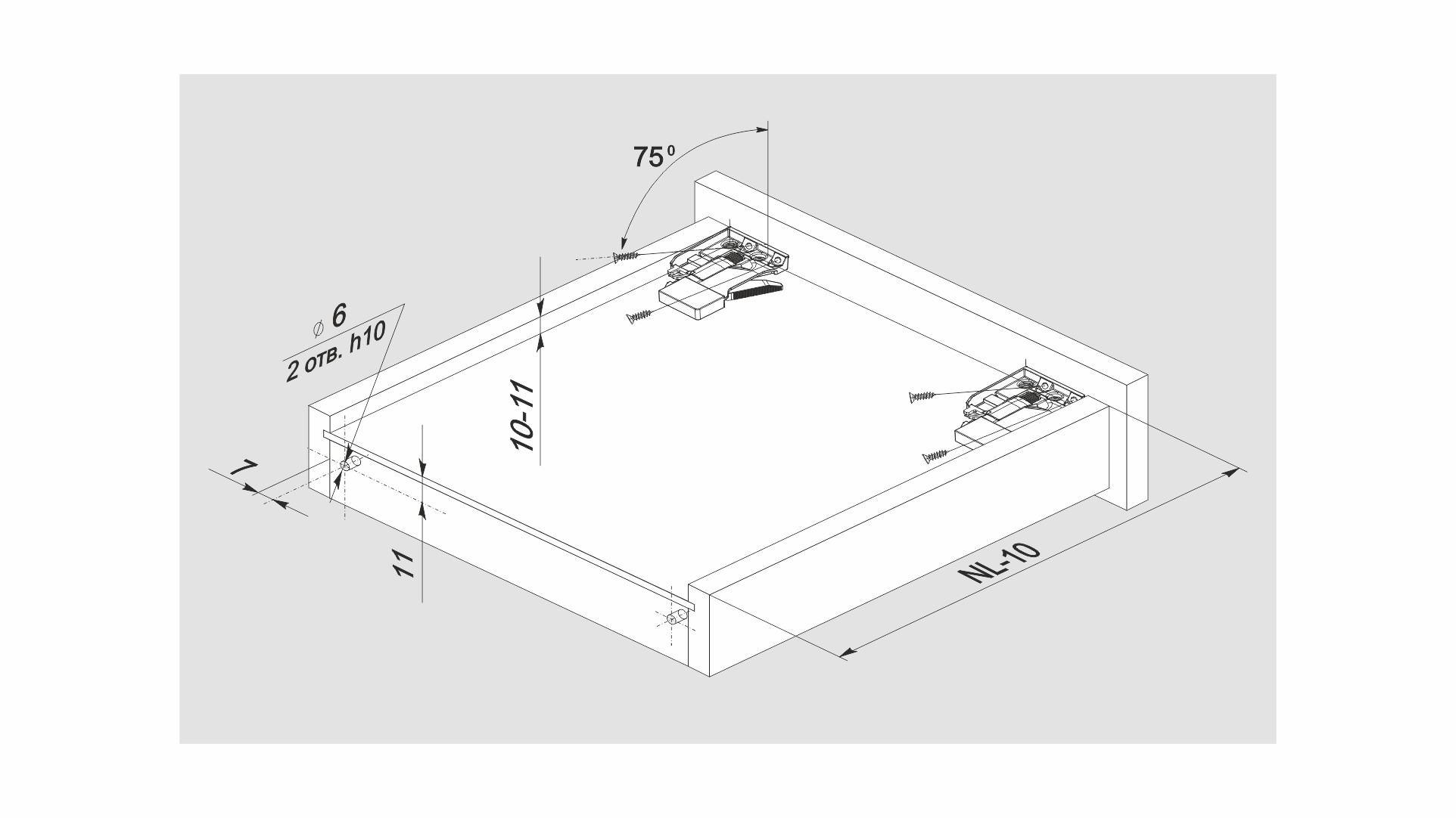 Раскрой и присадочные размеры идентичны направляющим скрытого монтажа B-Slide DB8881.