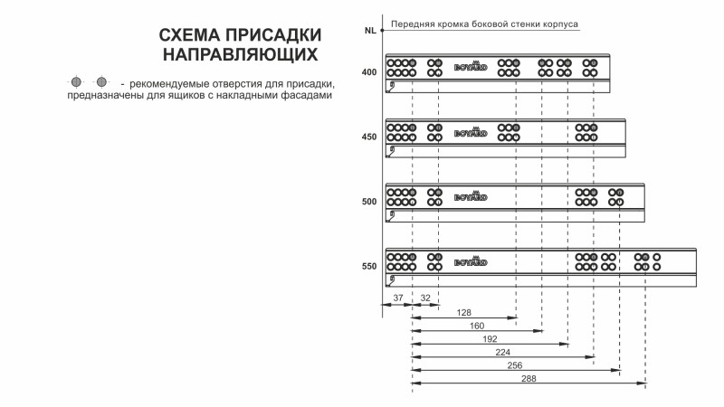 Раскрой и присадочные размеры идентичны направляющим скрытого монтажа B-Slide DB8881.