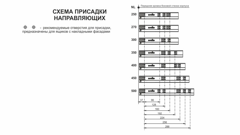 Раскрой и присадочные размеры идентичны направляющим скрытого монтажа B-Slide DB8882.