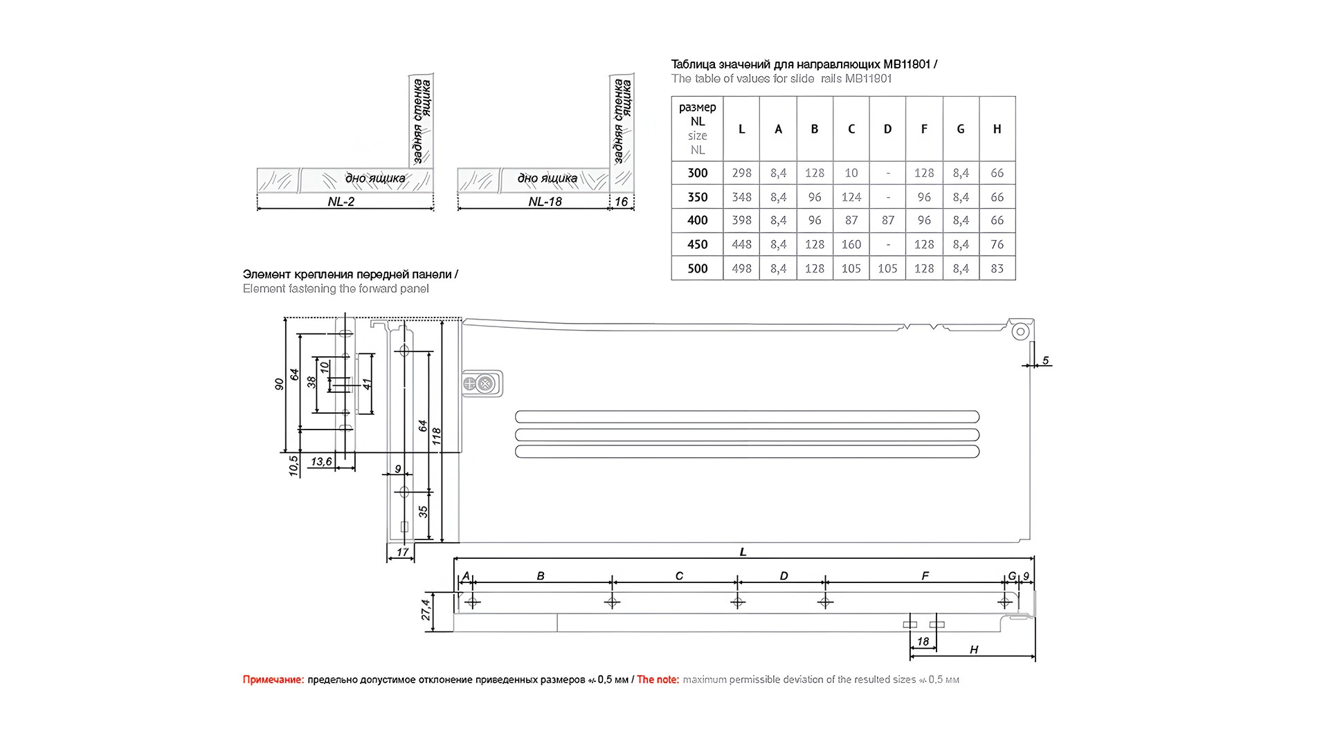 Системы выдвижения MB11801W/300