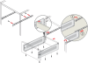 MB15001 — направляющие для изготовления выдвижных ящиков, с регулировкой фасада по высоте (+/-2 мм), с роликовой направляющей неполного выдвижения, с самозатягиванием, двойным остановом и защитой от выкатывания. Для ящиков с высотой боковой стенки 150 мм.