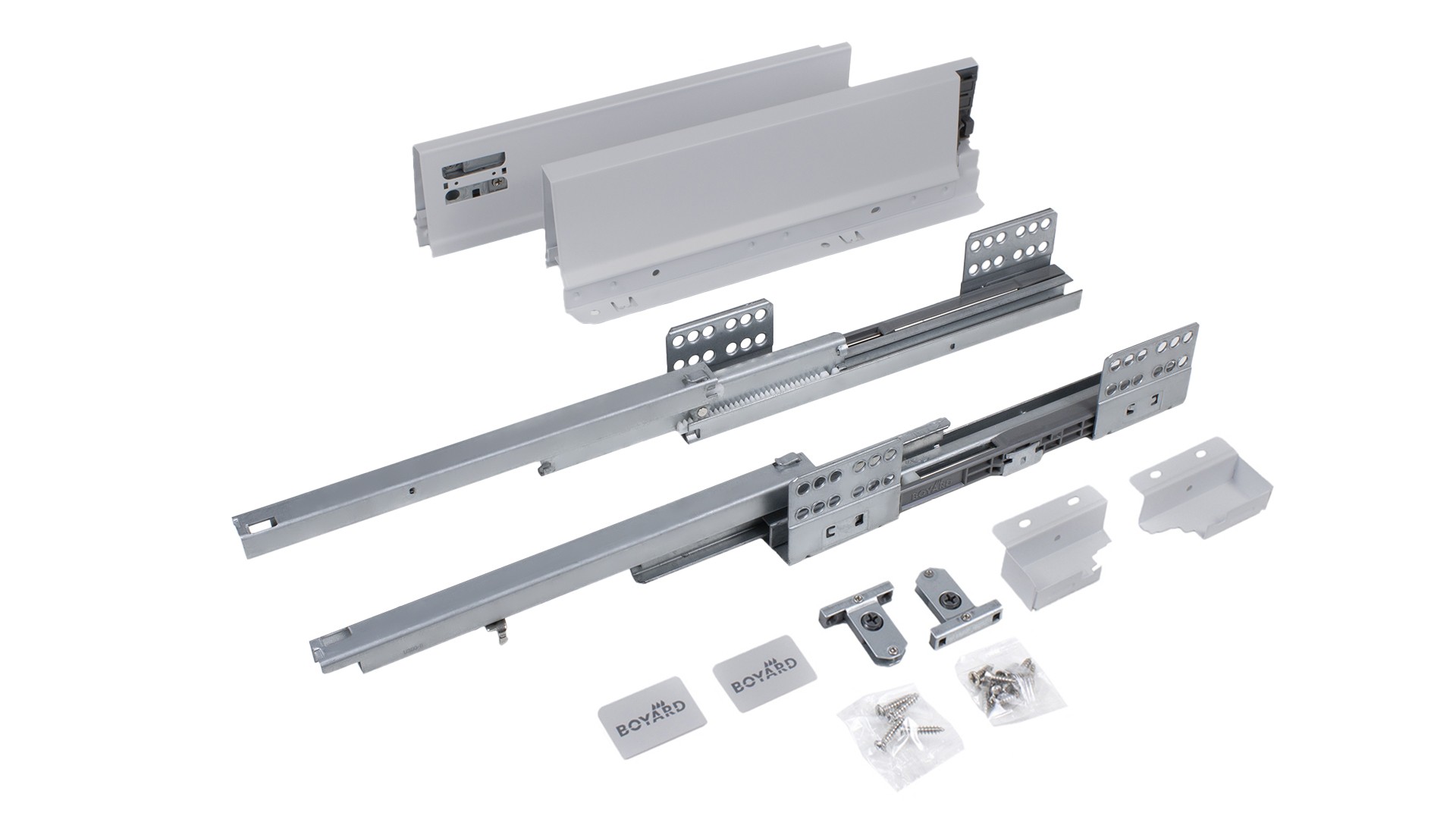Традиционные двойные металлические боковины выдвижного мебельного ящика системы СТАРТ представлены в двух цветах: серый и белый. Боковины имеют качественное порошковое покрытие и прослужат весь эксплуатационный срок, даже в условиях агрессивной кухонной среды.