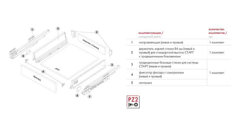 Для сборки выдвижного мебельного ящика на базе СТАРТ SOFT SB08 необходимо самостоятельно изготовить фасад, заднюю стенку и дно ящика.
