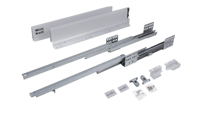 СТАРТ SOFT SB08 — комплект систем выдвижения для сборки выдвижного мебельного ящика с традиционными боковинами стандартной высоты.