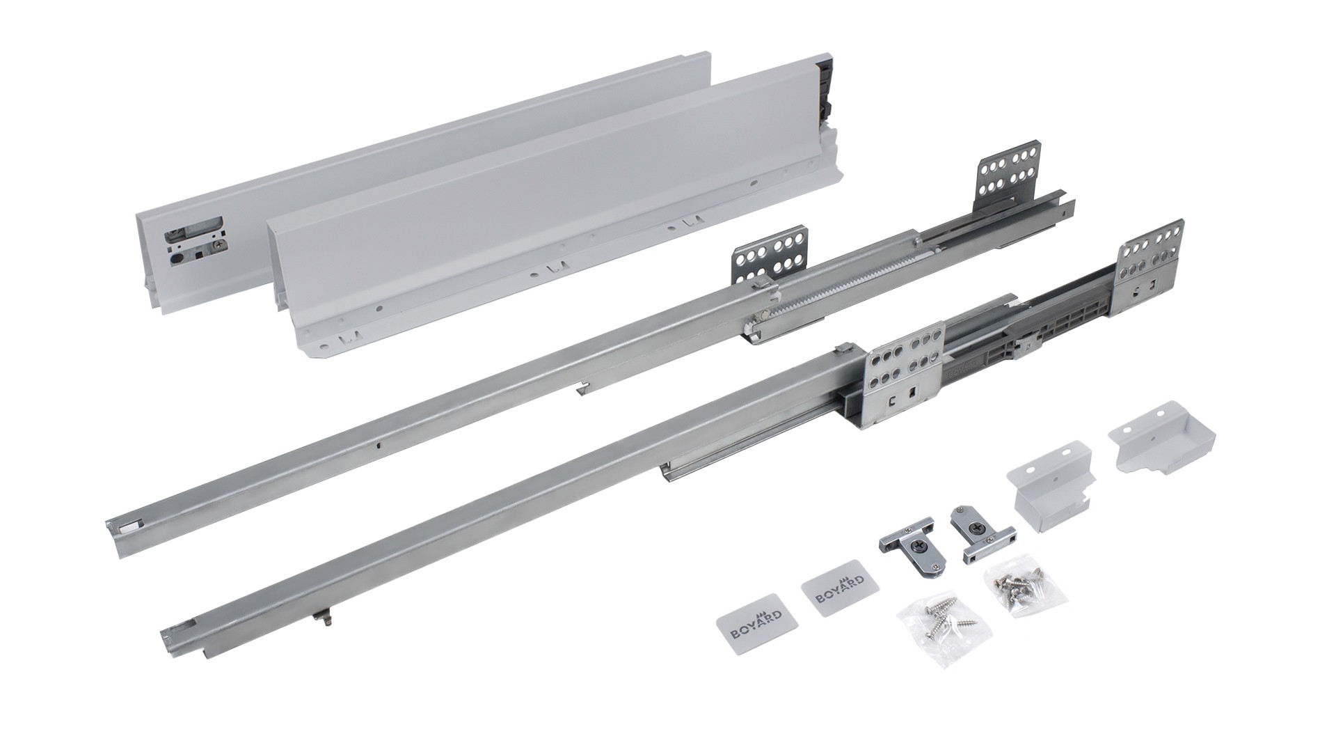 СТАРТ СОФТ SB08 — комплект систем выдвижения для сборки выдвижного мебельного ящика с традиционными боковинами стандартной высоты.