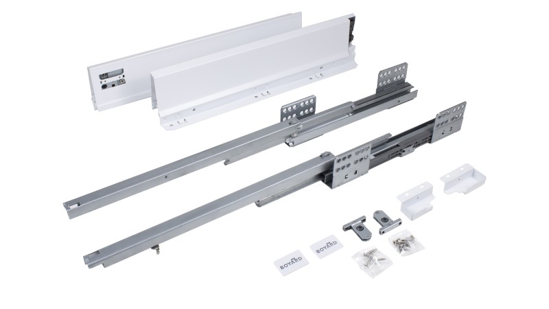 СТАРТ СОФТ SB08 — комплект систем выдвижения для сборки выдвижного мебельного ящика с традиционными боковинами стандартной высоты.