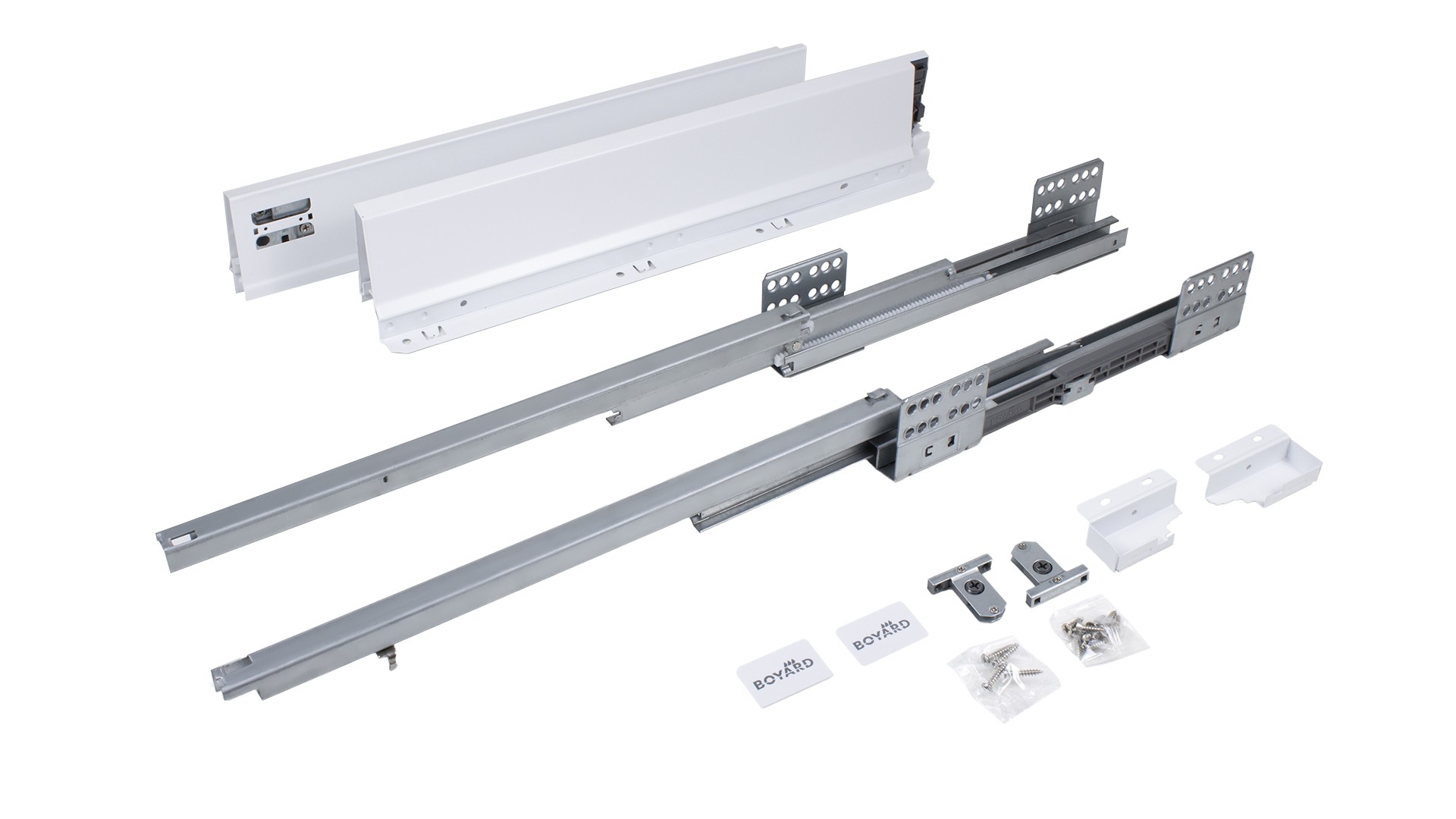 СТАРТ СОФТ SB08 — комплект систем выдвижения для сборки выдвижного мебельного ящика с традиционными боковинами стандартной высоты.