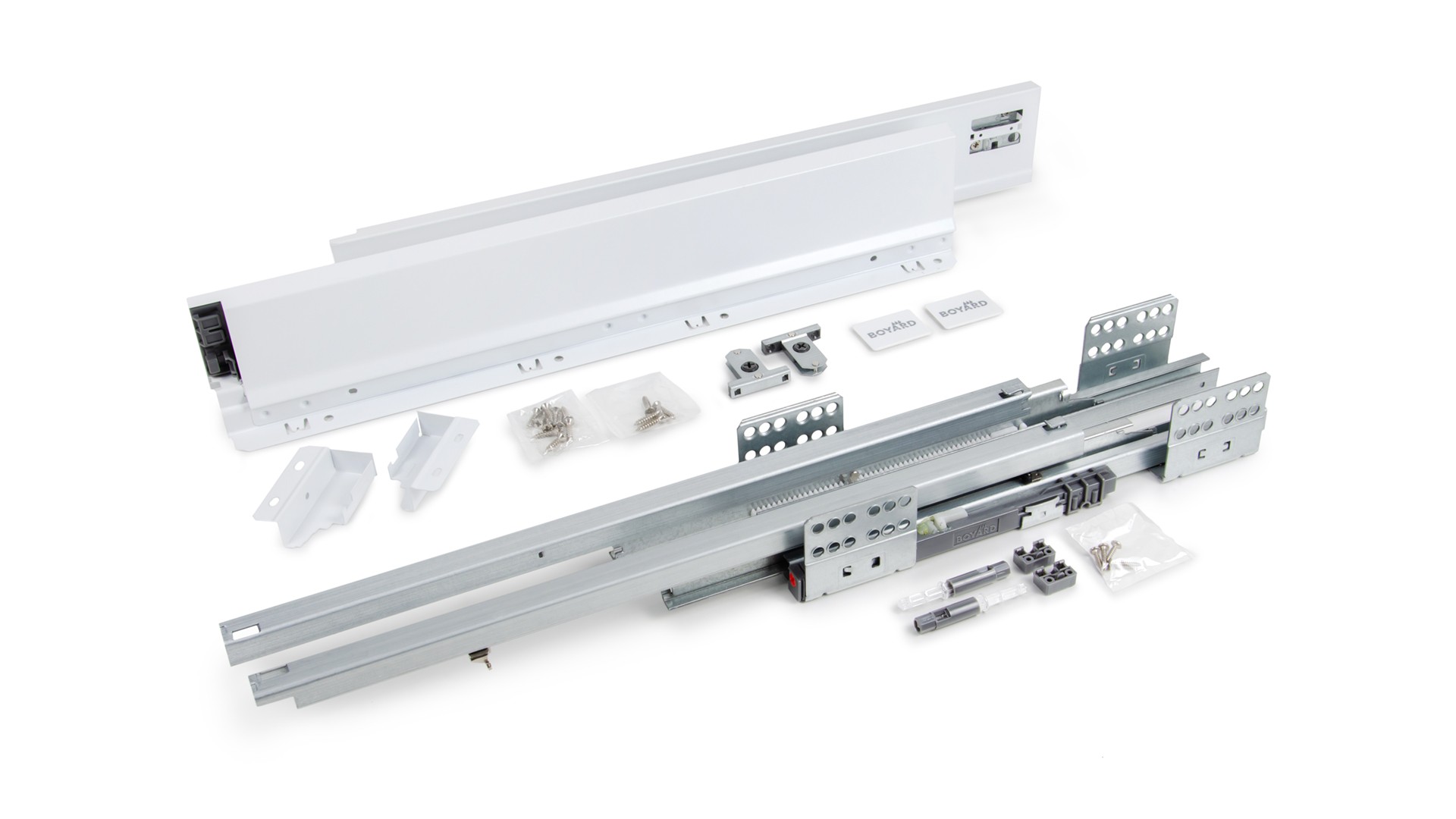 Системы выдвижения с двойными металлическими боковинами / W - Белый / Прямая форма боковин / Стандартной высоты