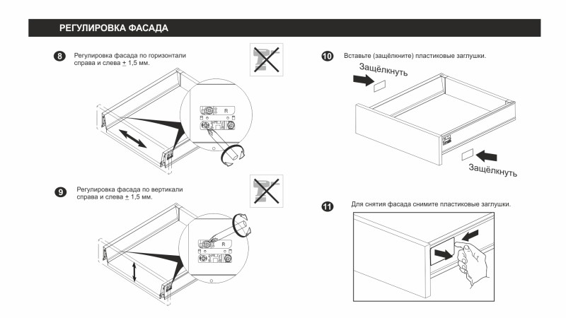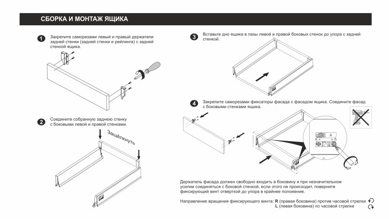 - Фиксатор фасада с саморезами (левый и правый)