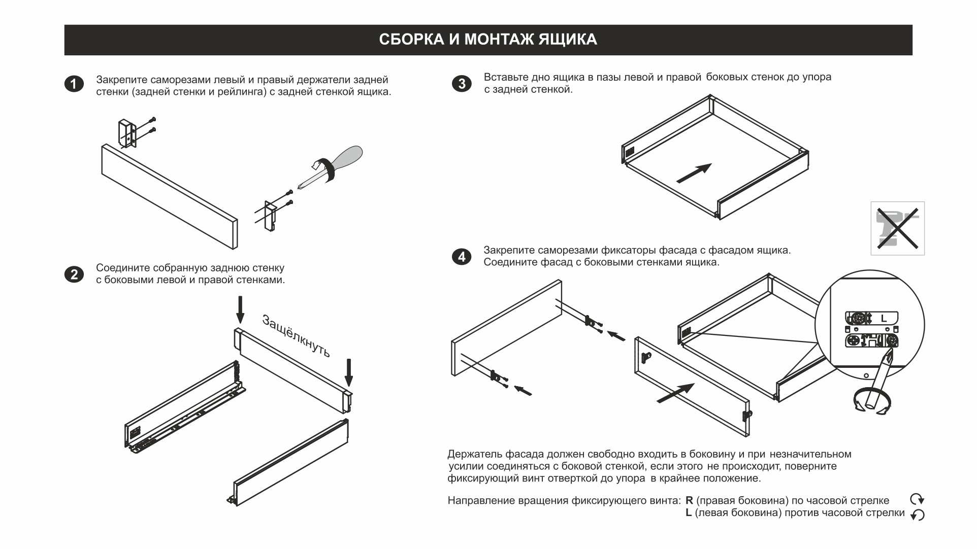 - Фиксатор фасада с саморезами (левый и правый)