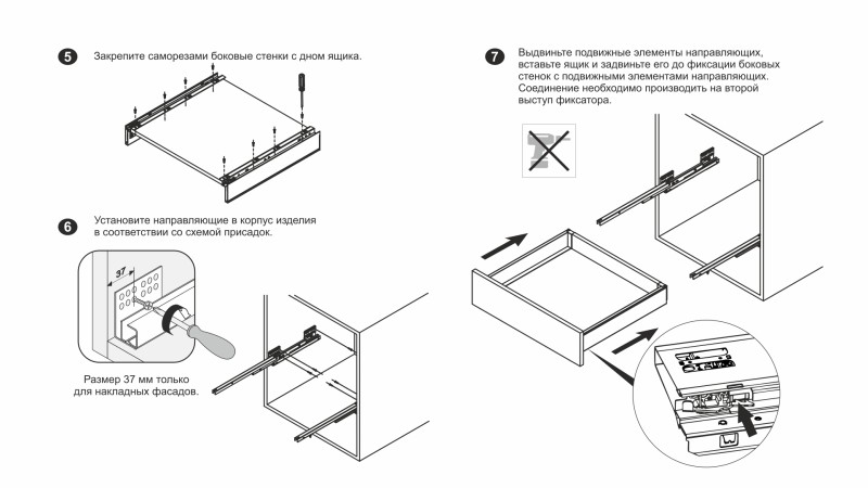 Для сборки выдвижного мебельного ящика на базе СТАРТ SOFT SB18 необходимо самостоятельно изготовить фасад, заднюю стенку и дно ящика.