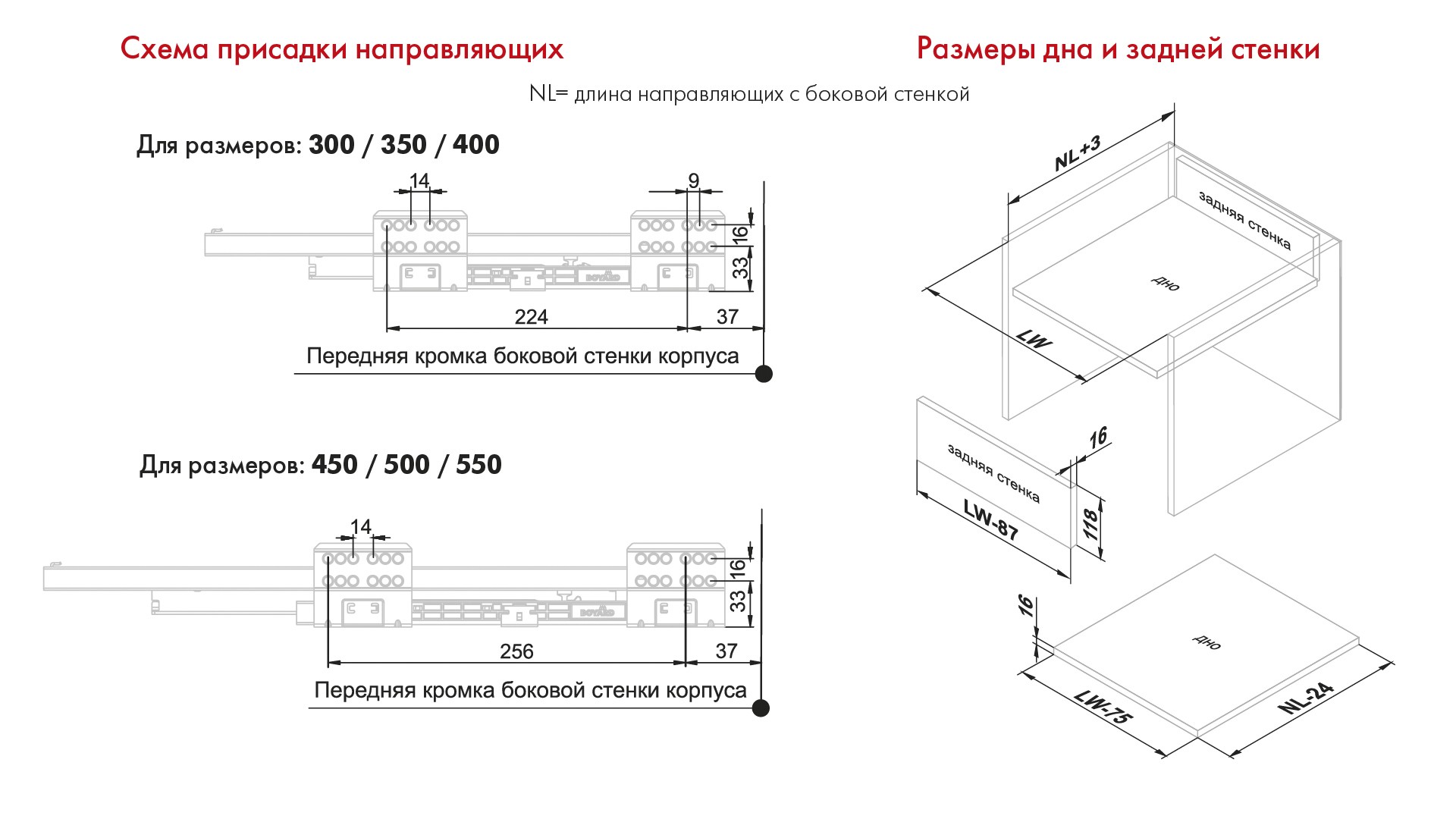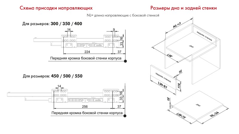 Для сборки выдвижного мебельного ящика на базе СТАРТ SOFT SB19 необходимо самостоятельно изготовить фасад, заднюю стенку и дно ящика.