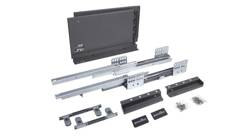 СТАРТ СОФТ SB20 — комплект систем выдвижения для сборки высокого выдвижного мебельного ящика с прямыми боковинами высотой 167 мм для минимальной высоты проёма 198 мм.