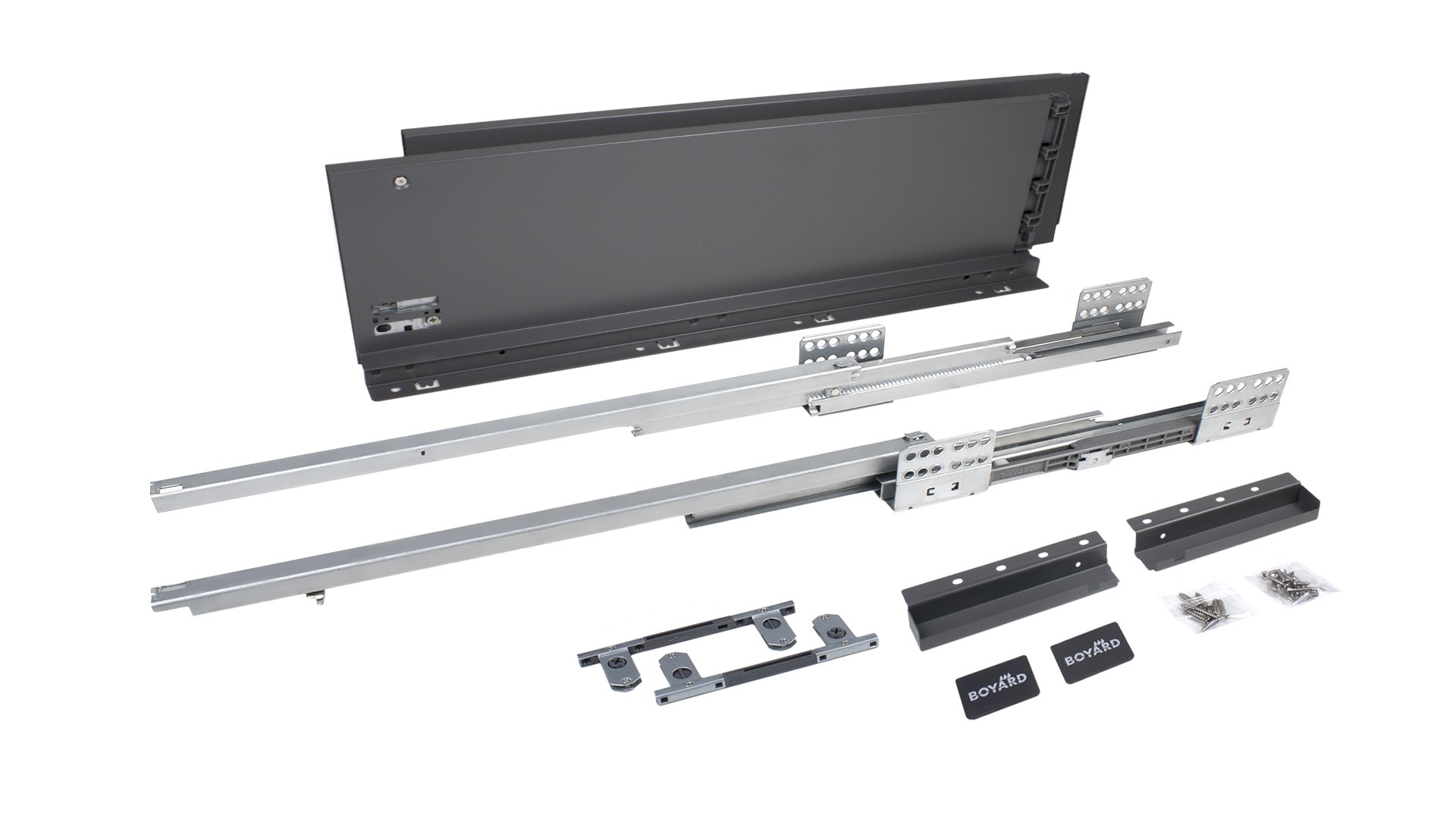 GR - Серый / Системы выдвижения с двойными металлическими боковинами / Прямая форма боковин / Высокие