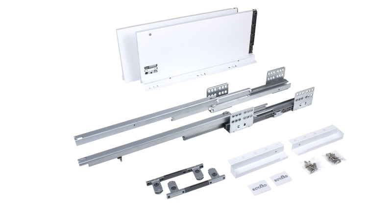 СТАРТ SOFT SB20 — комплект для формирования очень вместительных и высоких выдвижных ящиков с прямыми металлическими боковинами. Такие мебельные ящики часто располагаются в нижней части гарнитуров для кухонь, ванных комнат, гардеробных, офисных кабинетов, архивов.