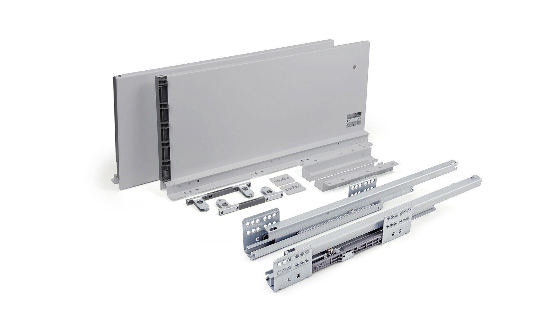 СТАРТ СОФТ ЭКСТРА SB21 — комплект систем выдвижения для сборки высоких, габаритных и вместительных выдвижных ящиков с плавным доведением и стильными прямыми боковинами высотой 199 мм для минимальной высоты проёма 230 мм.
