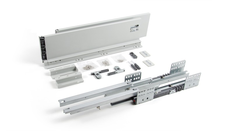 СТАРТ PUSH SB29 — комплект систем выдвижения для сборки выдвижного мебельного ящика с прямыми боковинами средней высоты с открытием от нажатия для мебели без ручек.
