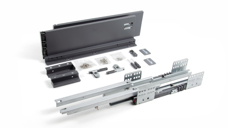 Системы выдвижения с двойными металлическими боковинами / GR - Серый / Прямая форма боковин / Средней высоты