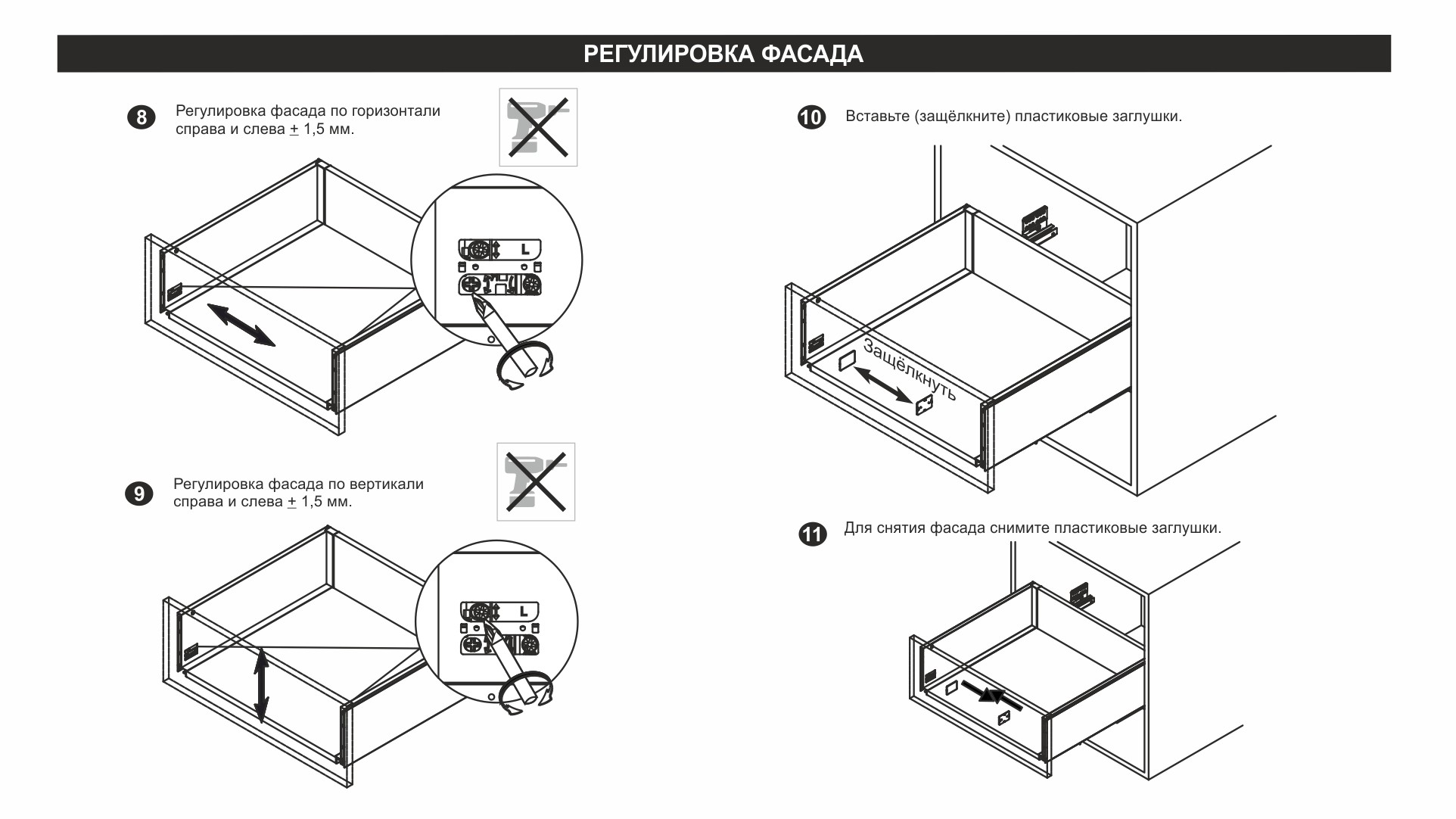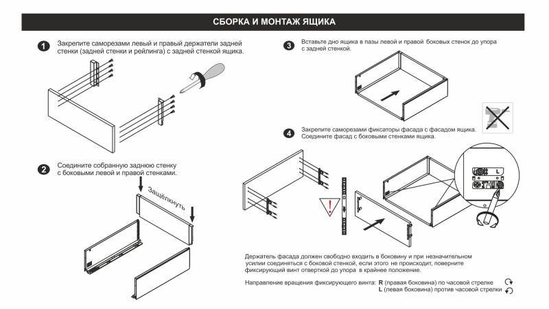 - Фиксатор фасада с саморезами (левый и правый)