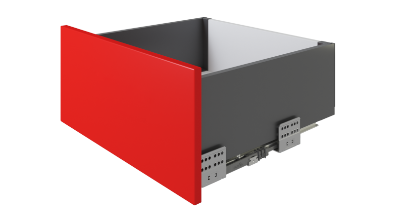 Система СТАРТ PUSH обеспечивает полное выдвижение после нажатия на фасад. Направляющие системы оснащены зубчато-реечным механизмом синхронизации, обеспечивающим равномерный ход и исключающим перекосы при движении.