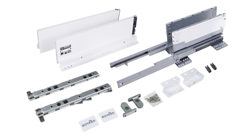 Для сборки выдвижного мебельного ящика на базе СТАРТ PUSH+SOFT SB38 необходимо самостоятельно изготовить фасад, заднюю стенку и дно мебельного ящика. Дополнительные рейлинги позволяют увеличить полезную высоту боковых стенок выдвижного ящика. Рейлинги и держатели к ним приобретаются отдельно.