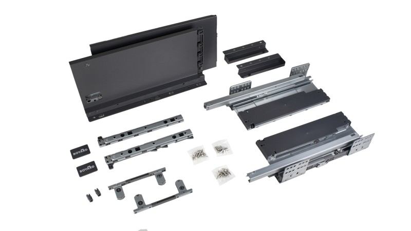 СТАРТ PUSH+SOFT SB40 — комплект систем выдвижения для сборки высокого выдвижного ящика с прямыми боковинами высотой 167 мм для мебели без ручек с открытием от нажатия и плавным доведением.