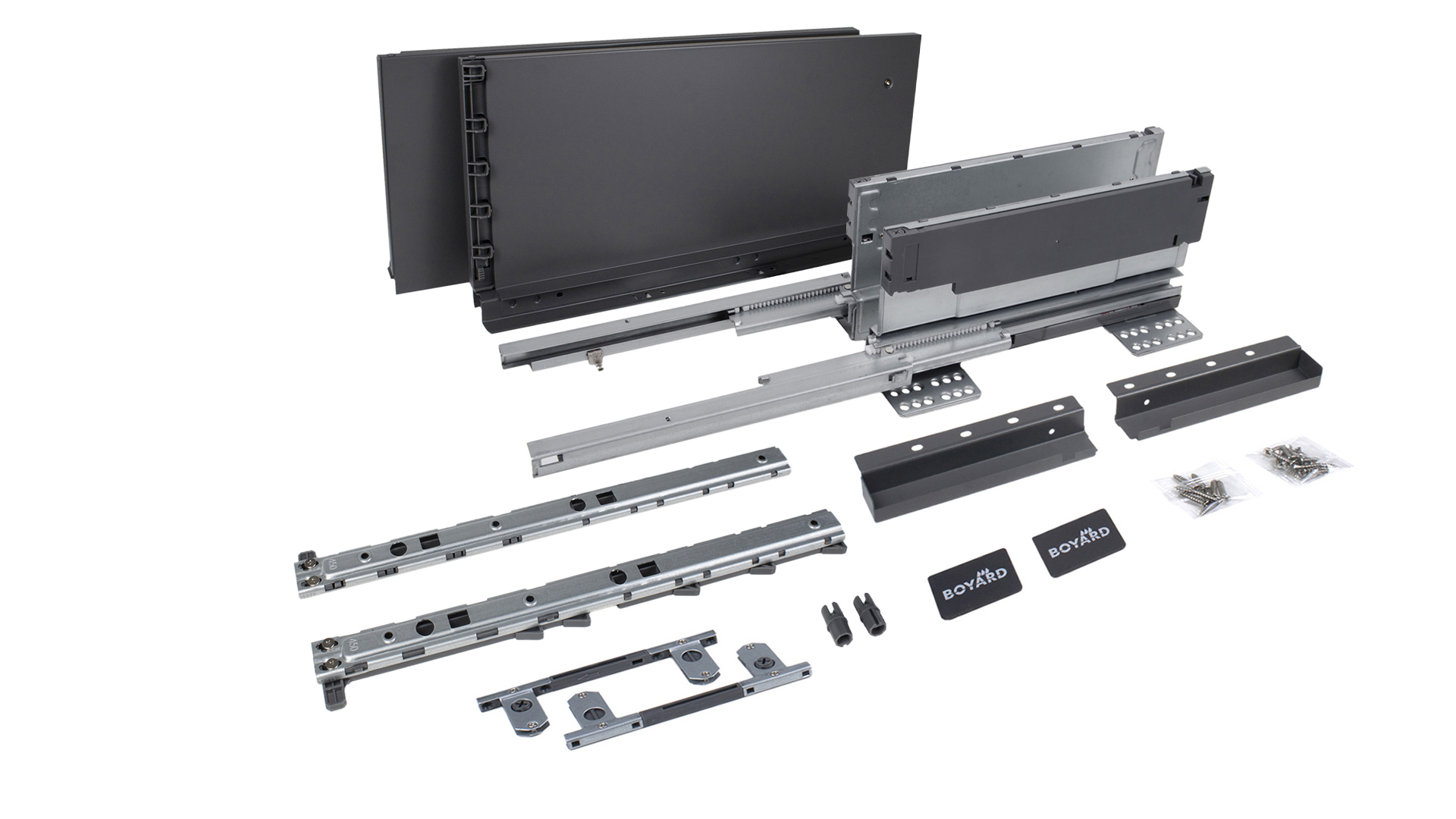 GRPH - Графитовый / Стандартной высоты / Системы выдвижения с двойными металлическими боковинами / Прямая форма боковин