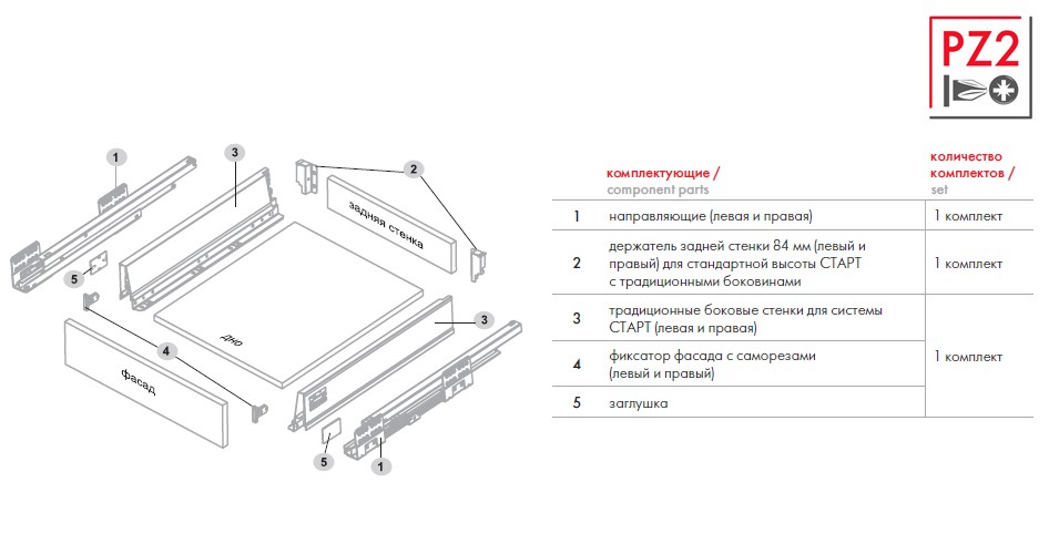Для сборки выдвижного мебельного ящика с помощью традиционных боковин SBDW08 необходимо самостоятельно изготовить фасад, заднюю стенку и дно ящика с учетом собственных пожеланий и потребностей по ширине и высоте готового ящика.